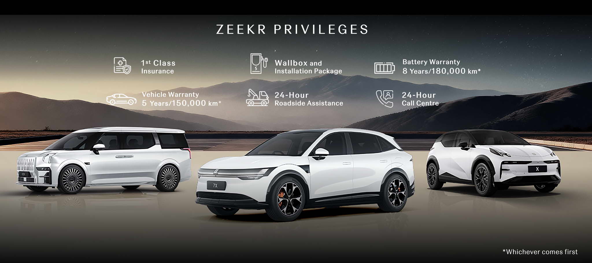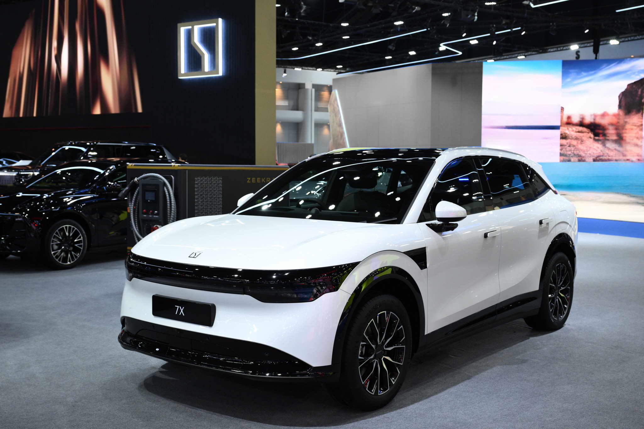 ZEEKR 9X — Zászlóshajó ultra-luxus SUV. A ZEEKR 9X a tavaly októberi kínai bevezetése után most először jelenik meg Thaiföldön. A zászlóshajó plug-in hibrid SUV-ként erőteljes dizájnjával vonzza magára a figyelmet, amelyet egy darabból álló krómozott hűtőrács és a 42 242 gyémántlapkával díszített „Vast Star Diamond Matrix” fényszórócsoport jellemez. Mindezt éles, letisztult karosszériavonalak egészítik ki, amelyek a kiegyensúlyozott erő érzetét sugározzák. A SEA-S platformra, a SEA Super Hybrid intelligens rendszerrel és 900 V-os elektromos architektúrával épített ZEEKR 9X 1030 kW csúcsteljesítményt ad le, és mindössze 3,1 másodperc alatt gyorsul 0-ról 100 km/h-ra. Egy feltöltéssel akár 380 km tisztán elektromos hatótávolságot tesz lehetővé, az összesített hatótávolság pedig eléri az 1250 km-t (CLTC szabvány). A 6C ultragyors töltési technológiával az akkumulátor mindössze 9 perc alatt 20%-ról 80%-ra tölthető fel (a töltési idő a maradék töltöttségi szinttől, a töltő teljesítményétől és a körülményektől függően változhat).