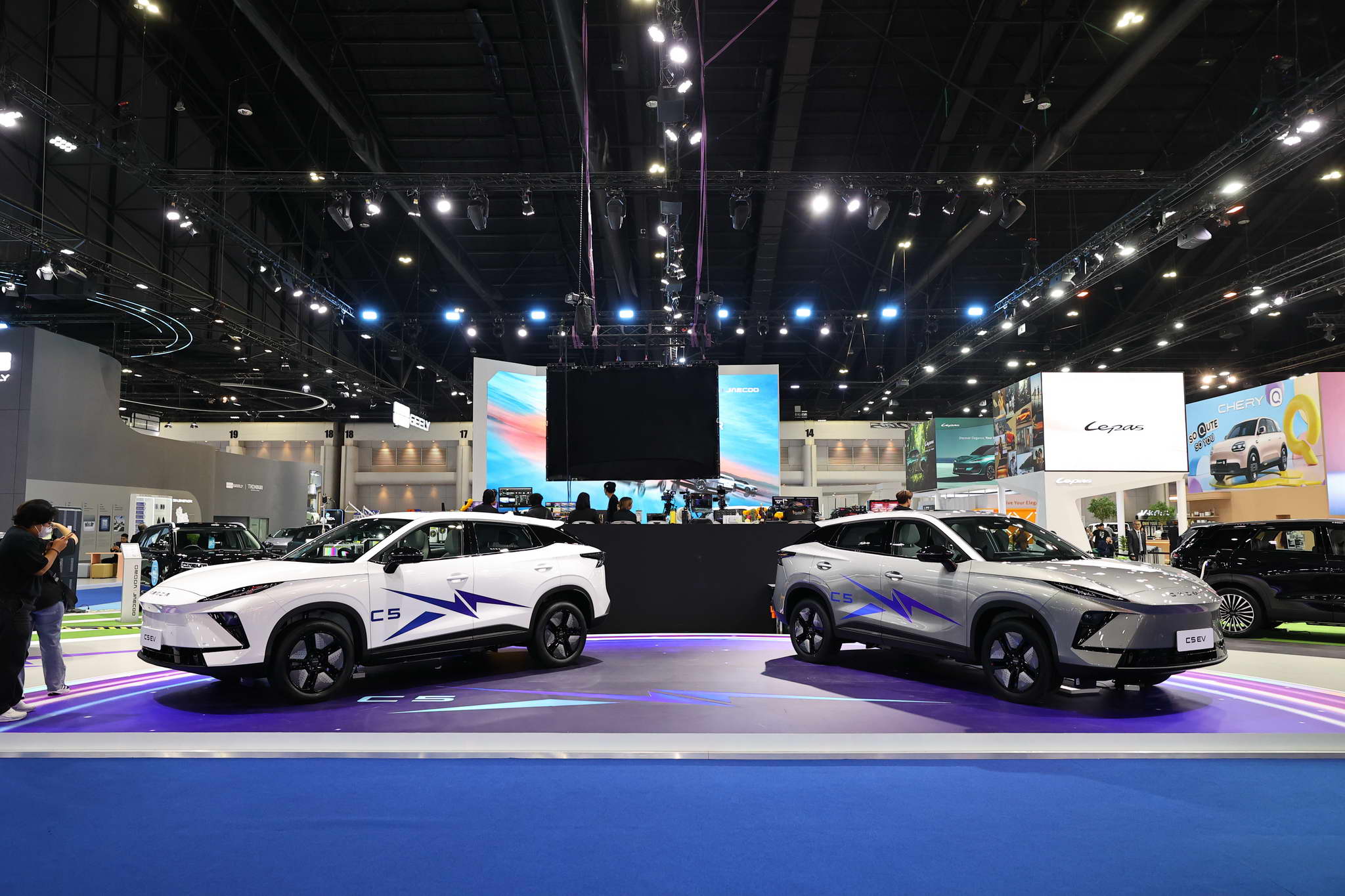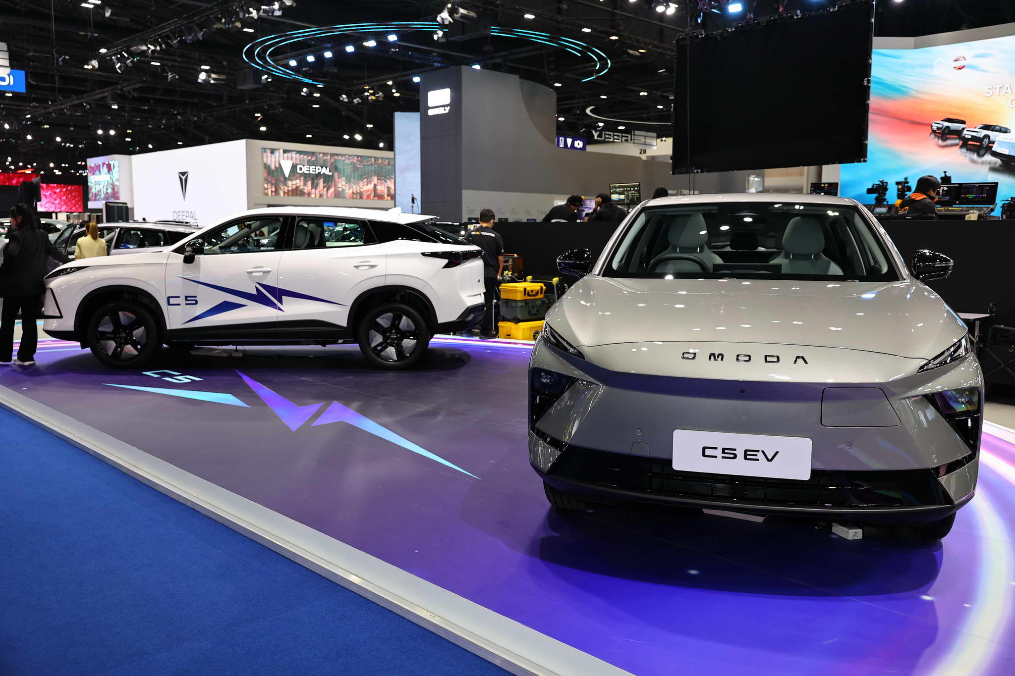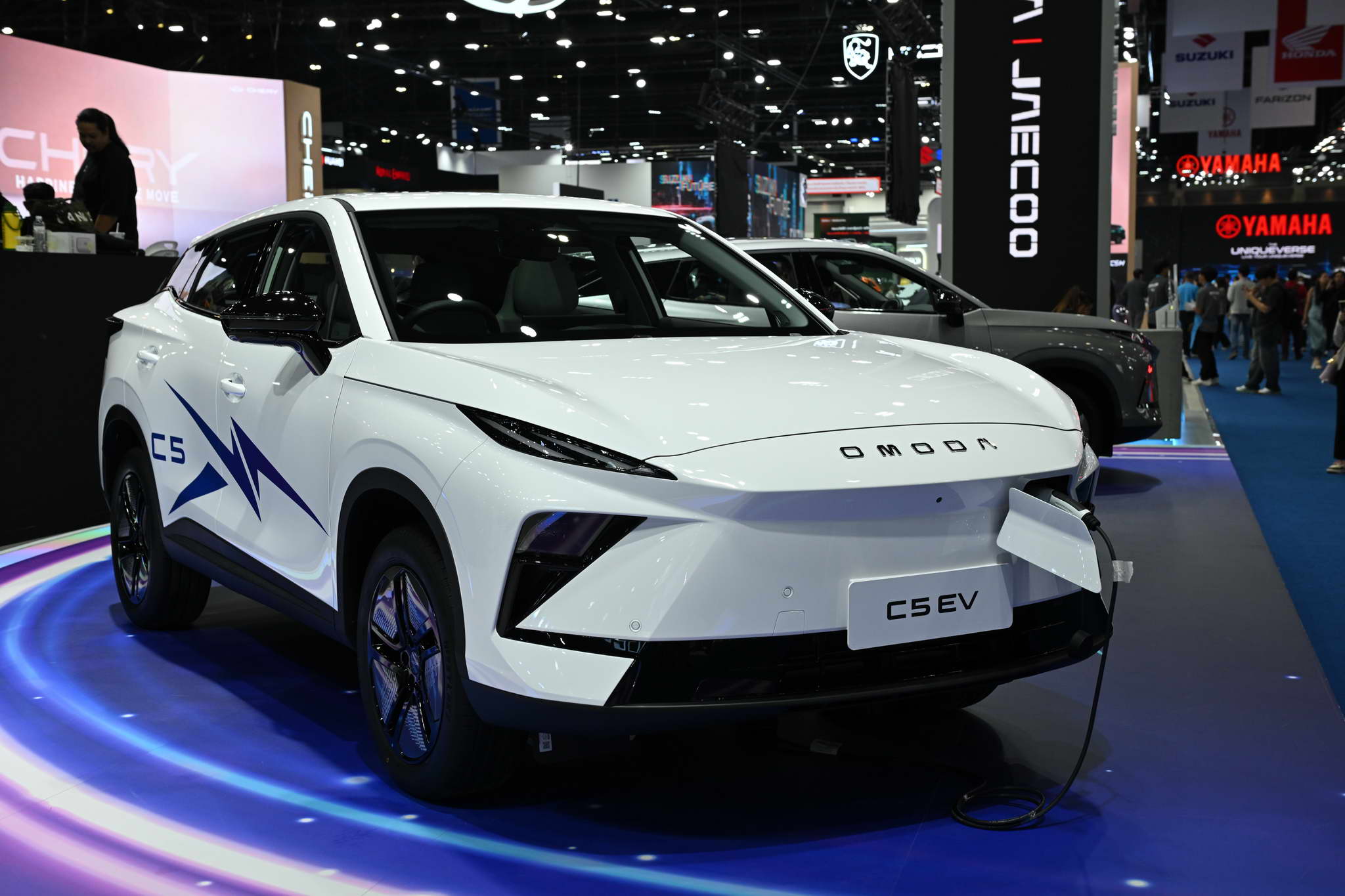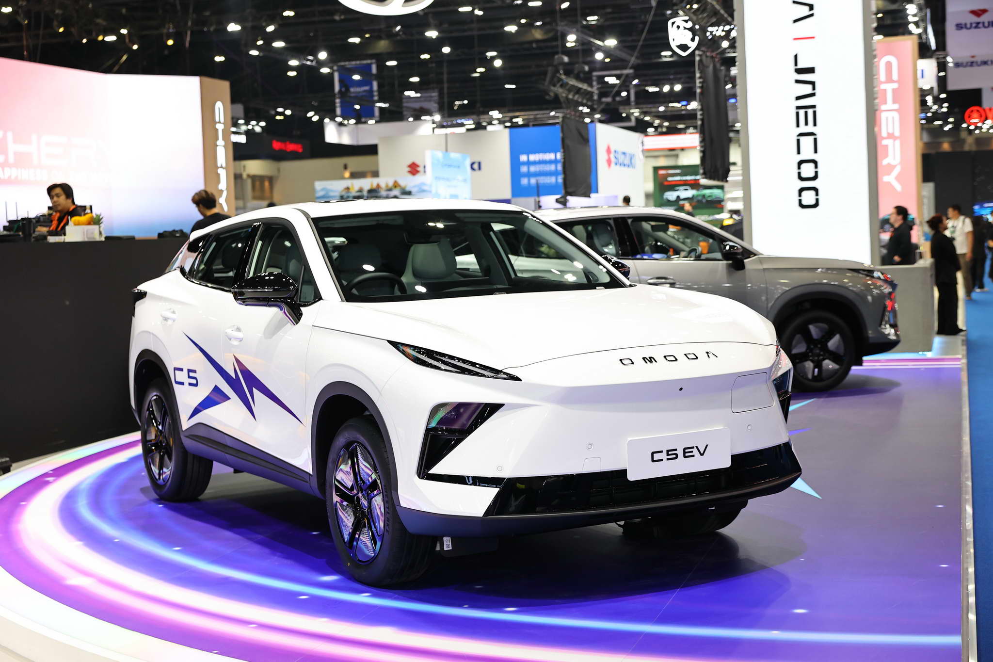 Az OMODA és a JAECOO standján kiállított járművek között megtalálható az OMODA C5 EV MAX+, a JAECOO 5 EV MAX+, a JAECOO 6 EV, a JAECOO 6T EV és a JAECOO 7 SHS.